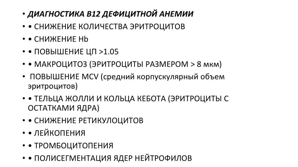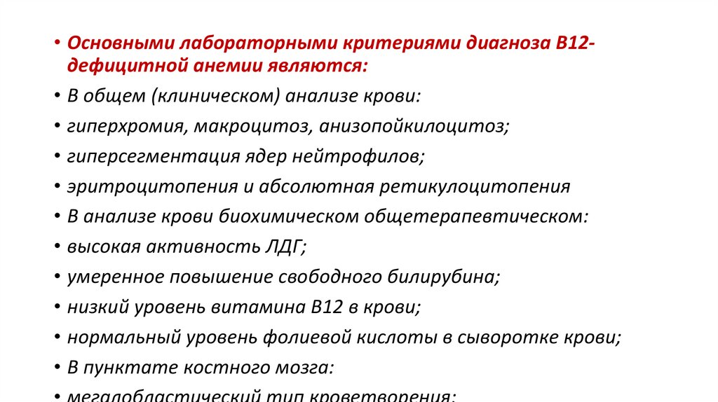 диагностике В12-дефицитной анемии умеренной или тяжелой