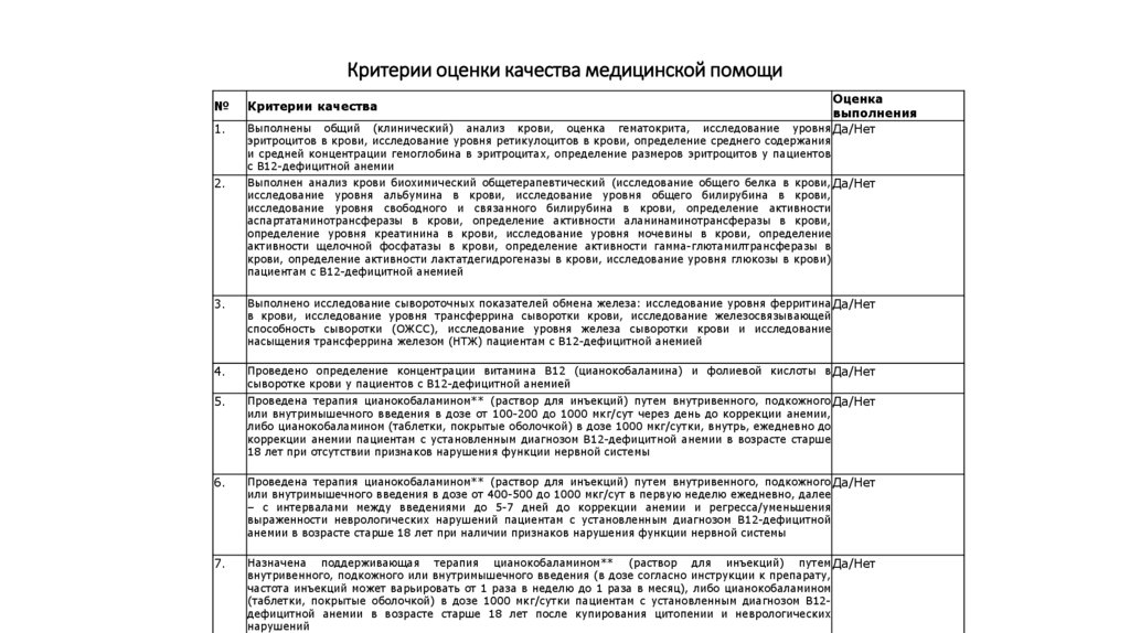 Критерии оценки качества медицинской помощиОценка