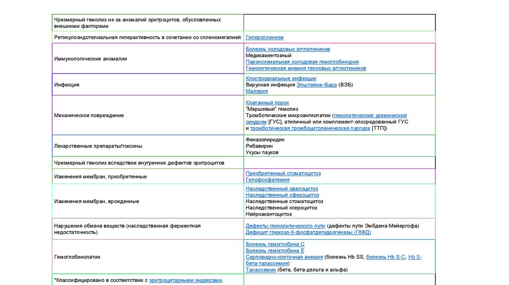 Чрезмерный гемолиз из-за аномалий эритроцитов, обусловленныхвнешними факторами