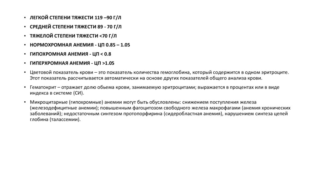 110 г/л) и гематокрит менее 36%.