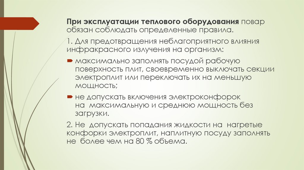 При эксплуатации теплового оборудования поваробязан соблюдать определенные правила.