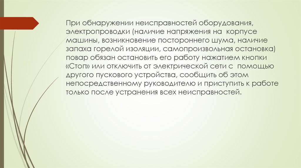 При обнаружении неисправностей оборудования,электропроводки (наличие напряжения на корпусе