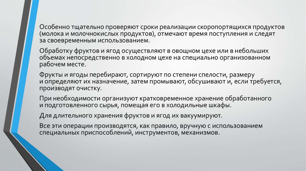 Обработку фруктов и ягод осуществляют в овощном цехе или в небольших