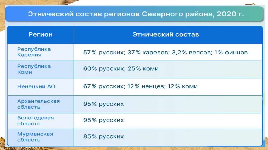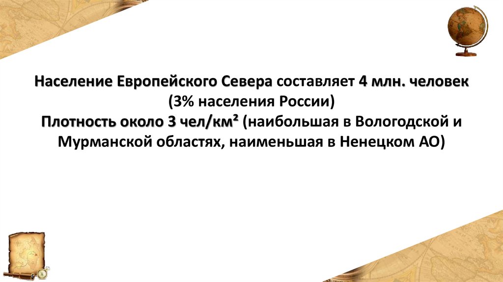 Европейский север.Особенности населения.