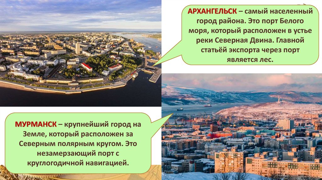 АРХАНГЕЛЬСК – самый населенныйгород района. Это порт Белого