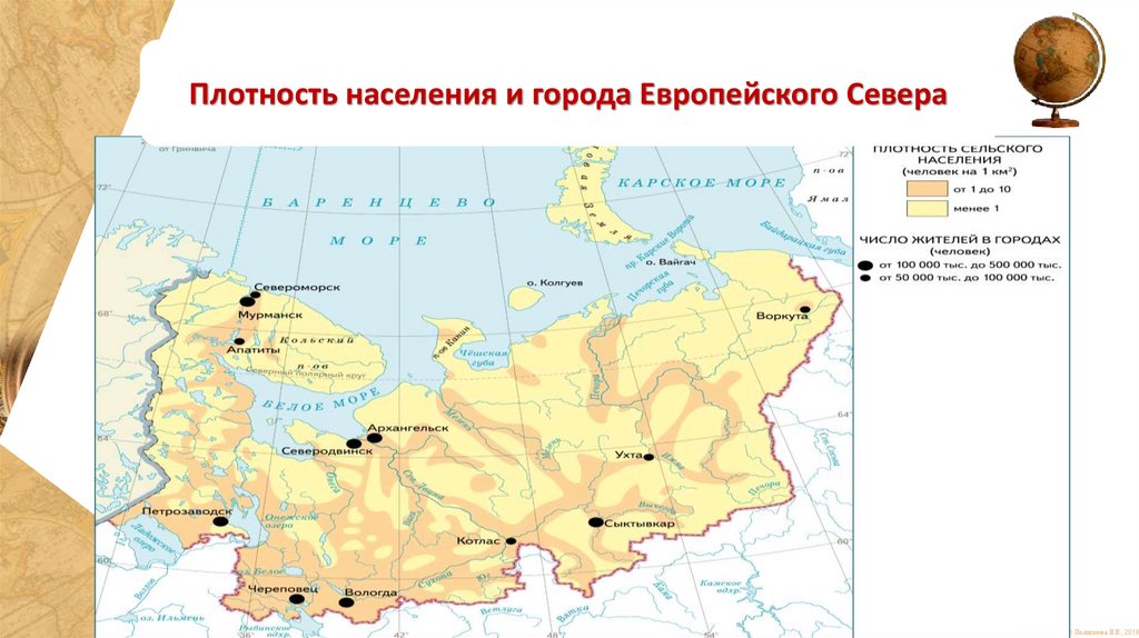 Плотность населения и города Европейского Севера© Полшкова В.В., 2018