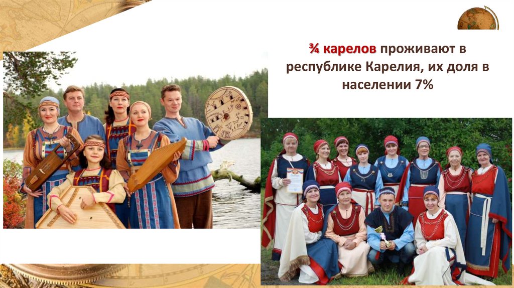 ¾ карелов проживают вреспублике Карелия, их доля в