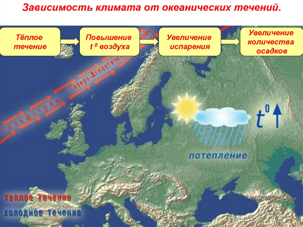 Зависимость климата от океанических течений.Тёплое