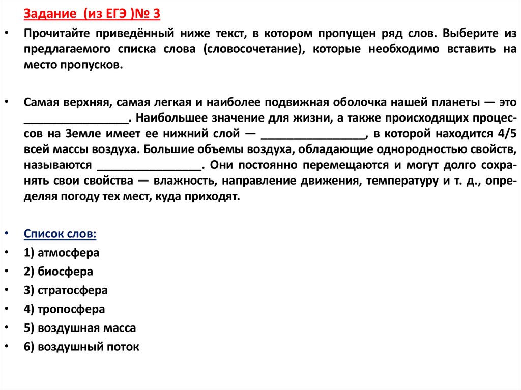 Задание (из ЕГЭ )№ 3Прочитайте приведённый ниже текст, в котором пропущен ряд слов. Выберите из