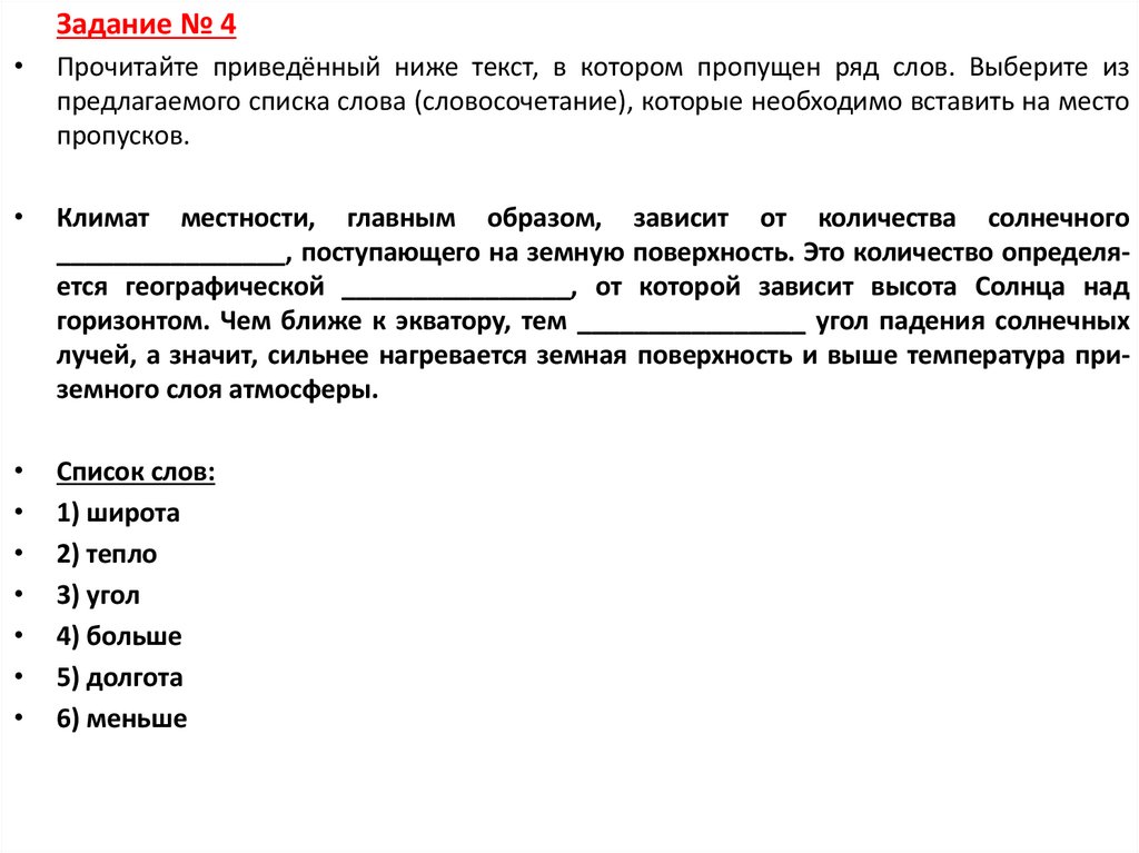 Задание № 4Прочитайте приведённый ниже текст, в котором пропущен ряд слов. Выберите из