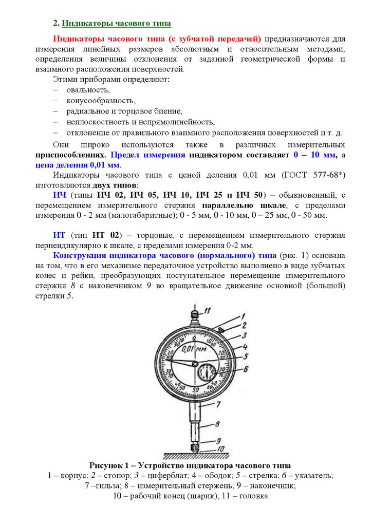 2. Индикаторы часового типаИндикаторы часового типа (с зубчатой передачей) предназначаются для