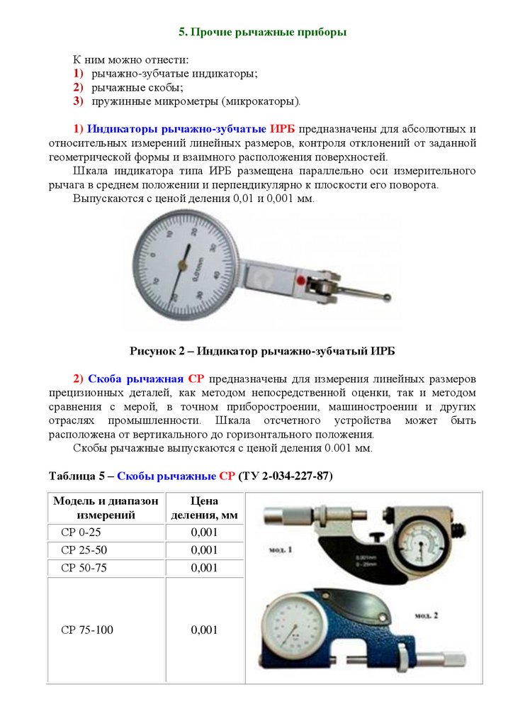 1) Индикаторы рычажно-зубчатые ИРБ предназначены для абсолютных и