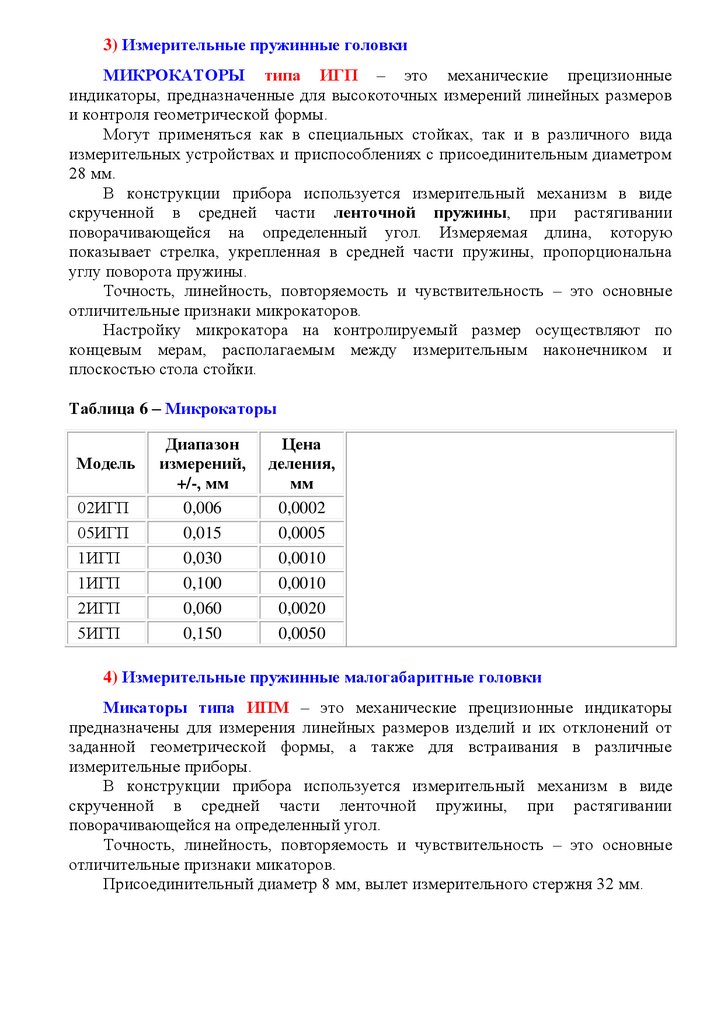 3) Измерительные пружинные головкиМИКРОКАТОРЫ типа ИГП – это механические прецизионные