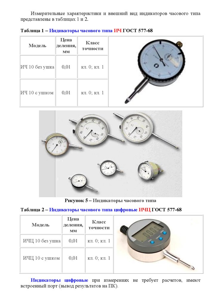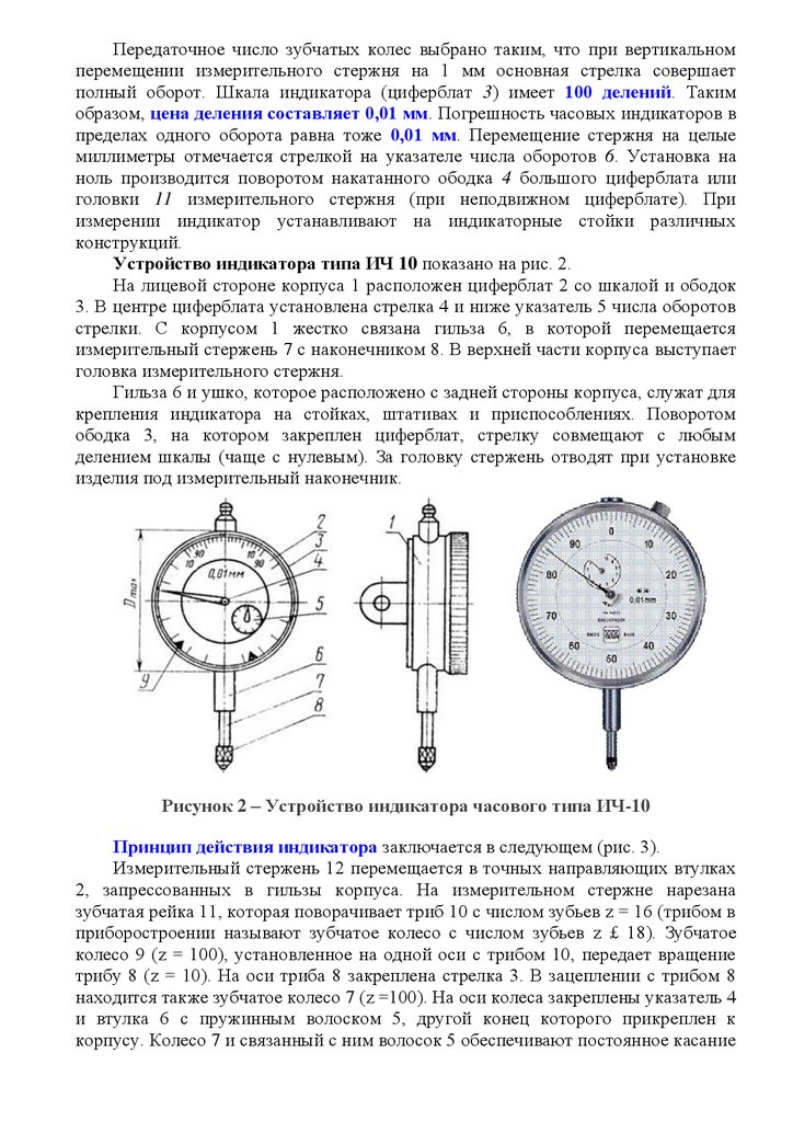 образом, цена деления составляет 0,01 мм. Погрешность часовых индикаторов в