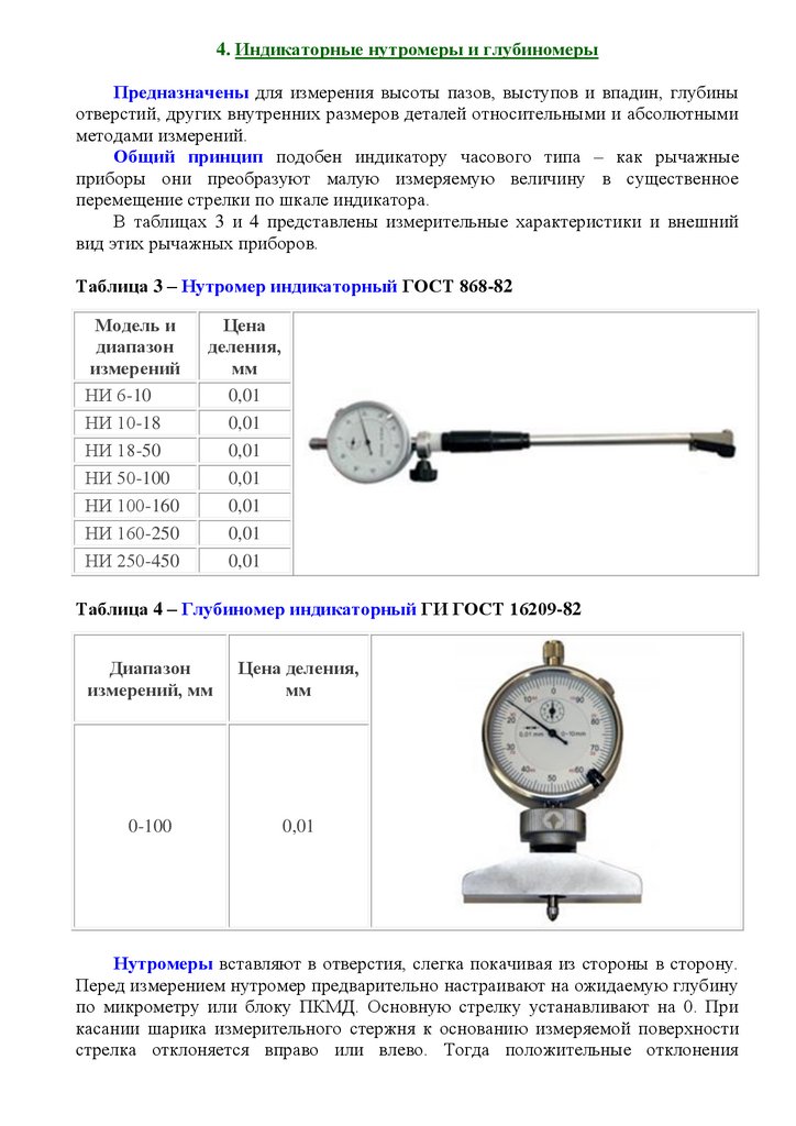 часового типа и индикаторные нутромеры, а для высокоточных измерений –