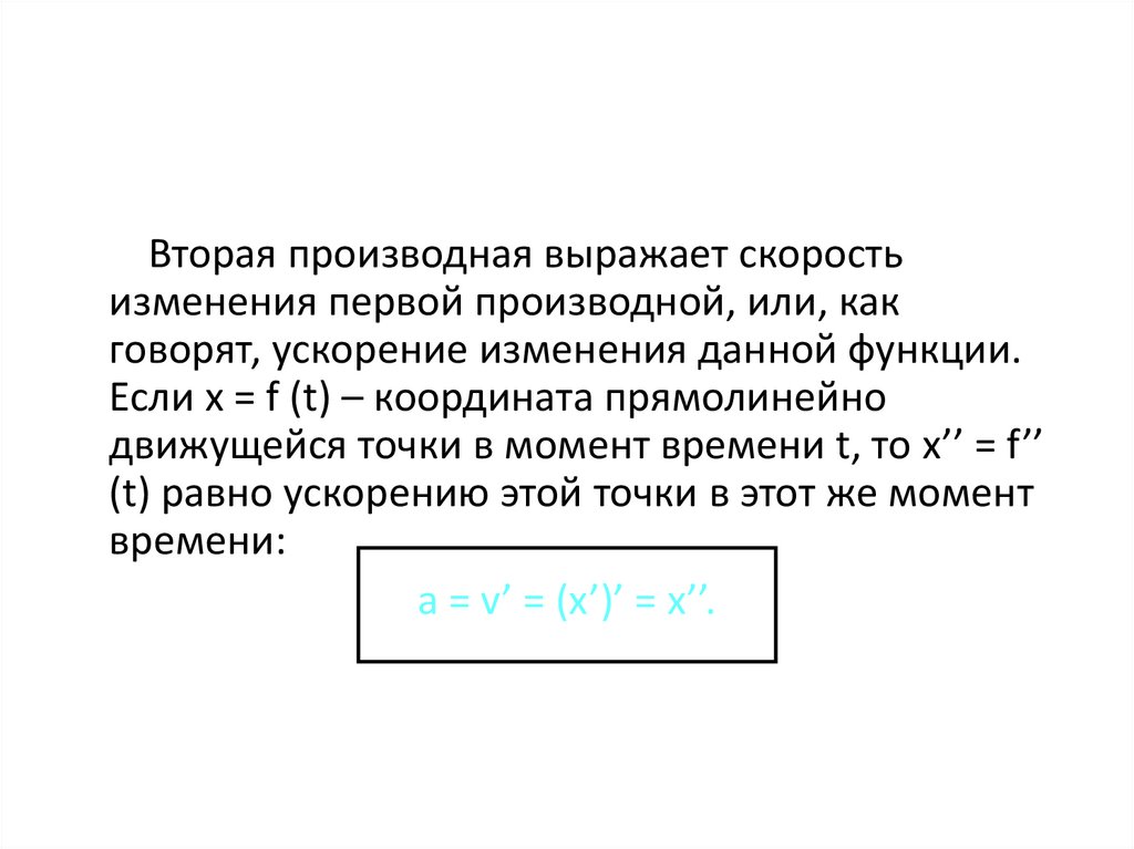 Вторая производная выражает скоростьизменения первой производной, или, как