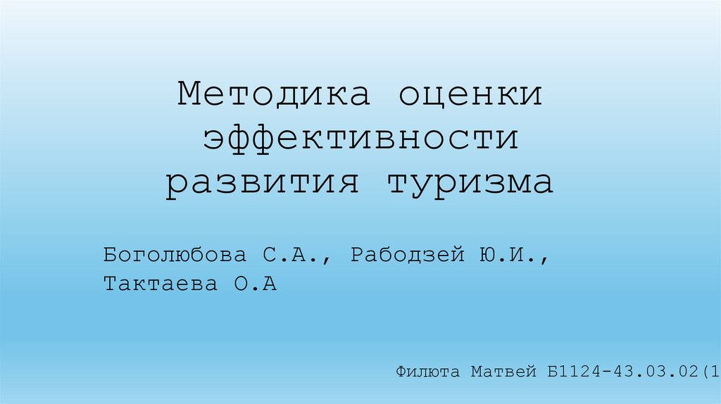 • Под методикой оценки эффективности развитиятуризма в логике статьи понимается комплекс
