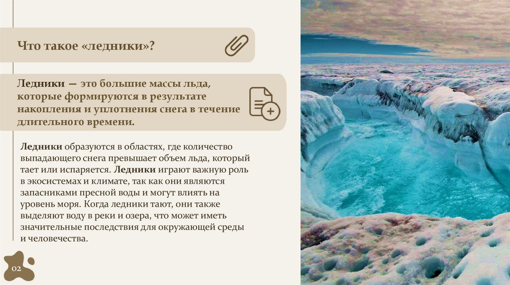 тает или испаряется. Ледники играют важную роль