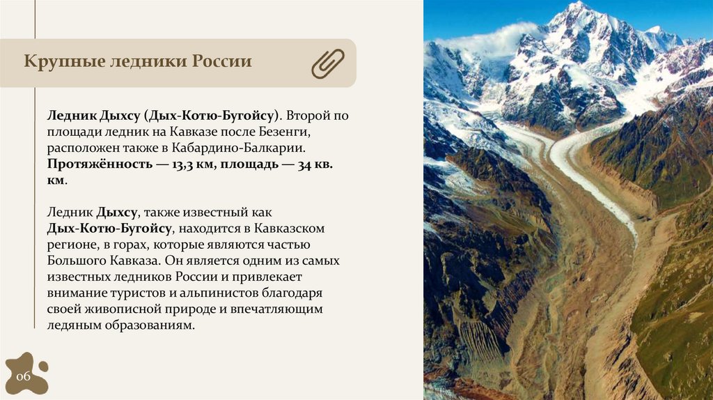Крупные ледники РоссииЛедник Дыхсу (Дых-Котю-Бугойсу). Второй по