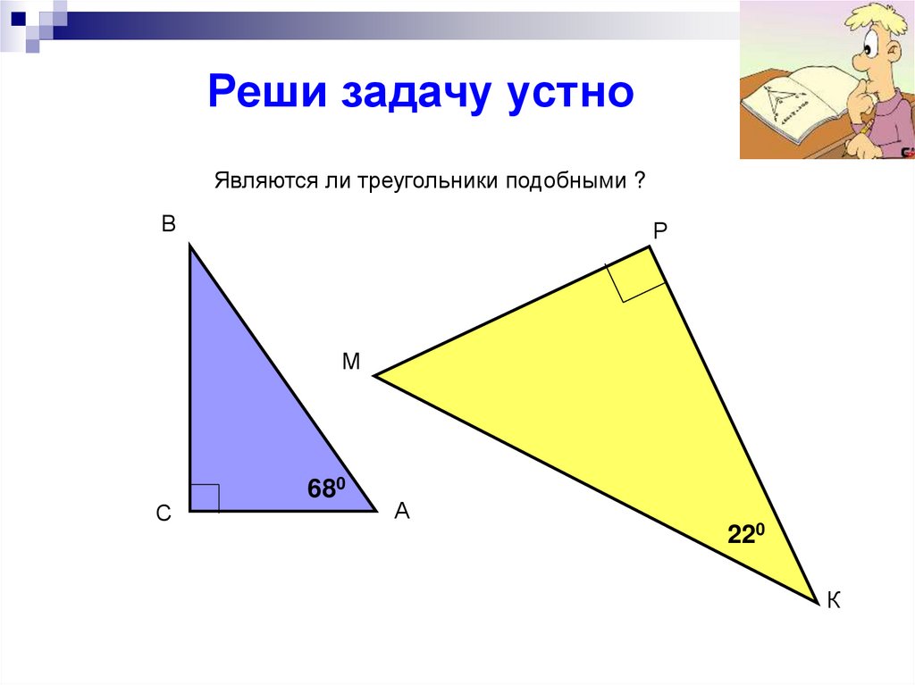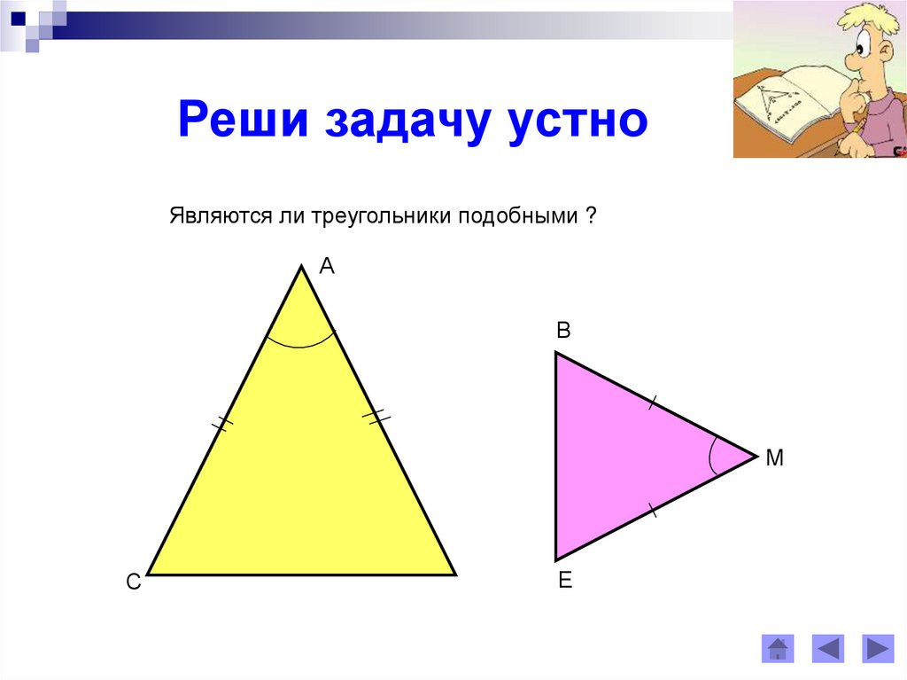 Реши задачу устноЯвляются ли треугольники подобными ?