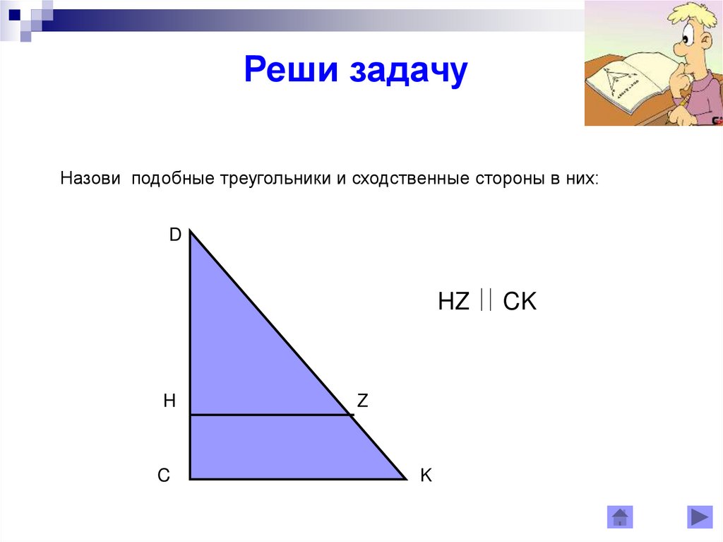 Реши задачуНазови подобные треугольники и сходственные стороны в них: