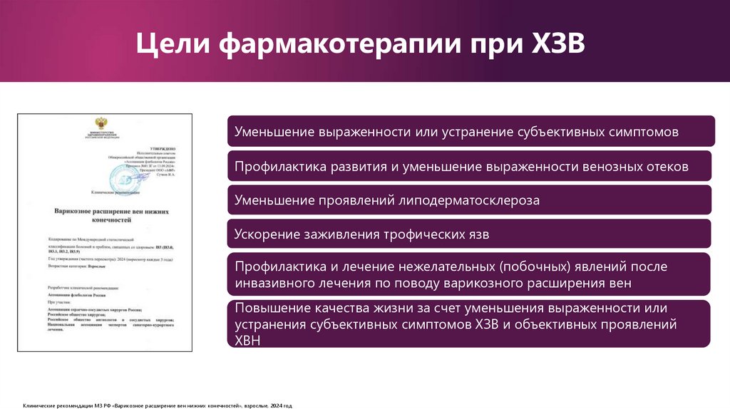 устранения субъективных симптомов ХЗВ и объективных проявлений