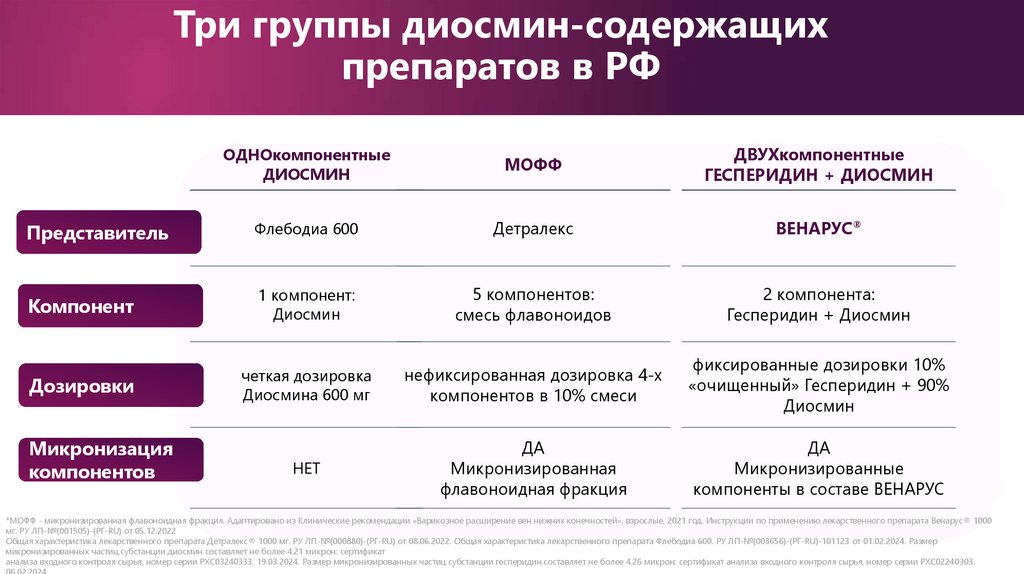 25. ВЕНАРУС® содержит два микронизированных компонента в стандартизированных дозировках для стабильного терапевтического эффекта1-4