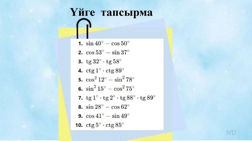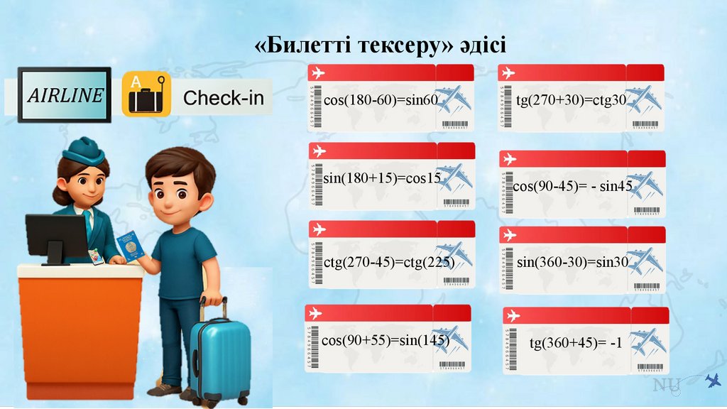 «Билетті тексеру» әдісіcos(180-60)=sin60