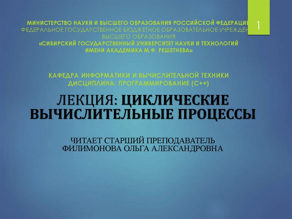 ЛЕКЦИЯ: ЦИКЛИЧЕСКИЕ