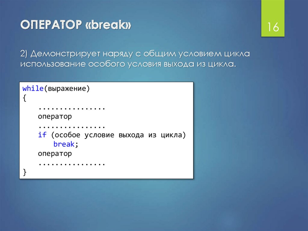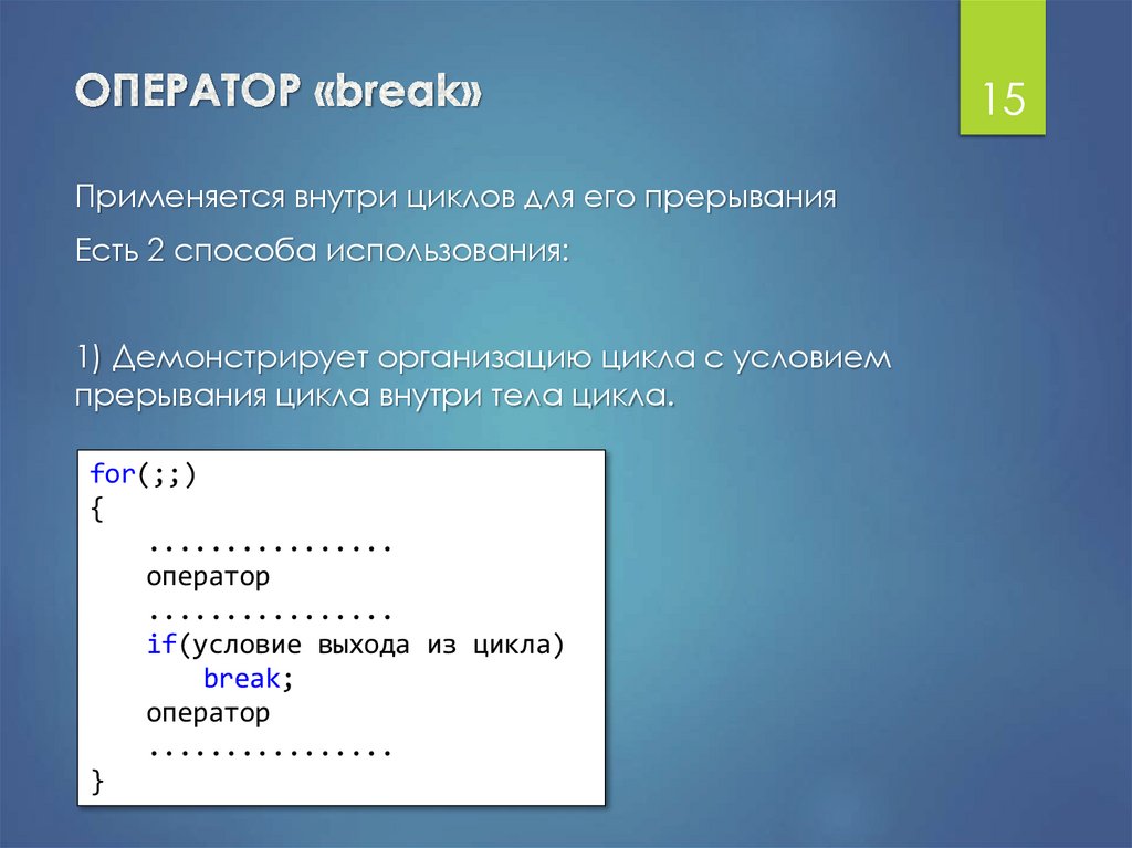 что бы на некотором шаге цикл прекратился бы, т.е.
