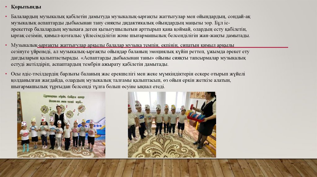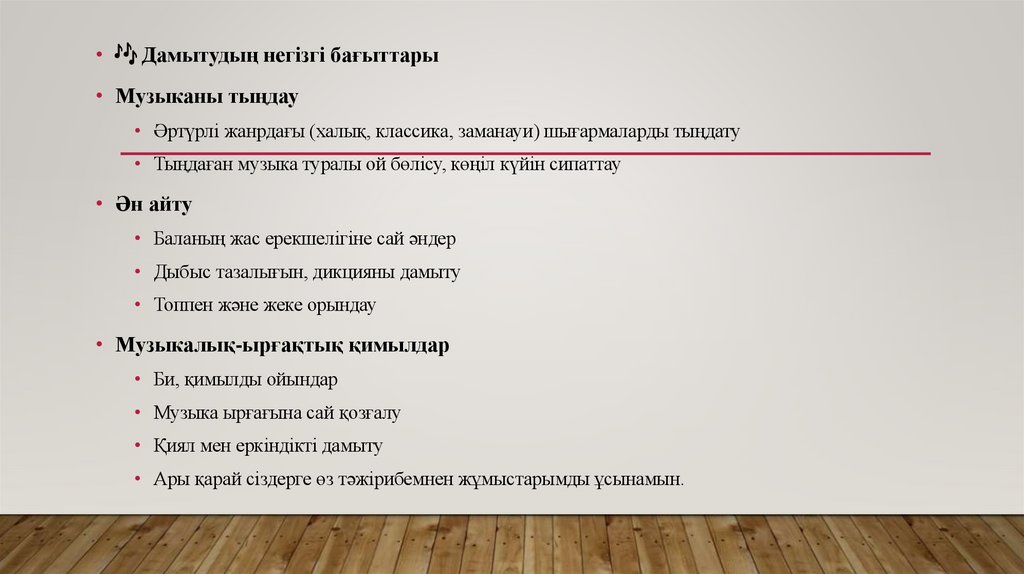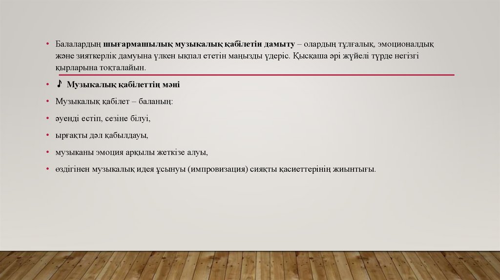 • Балалардың шығармашылық музыкалық қабілетін дамыту – олардың тұлғалық, эмоционалдық