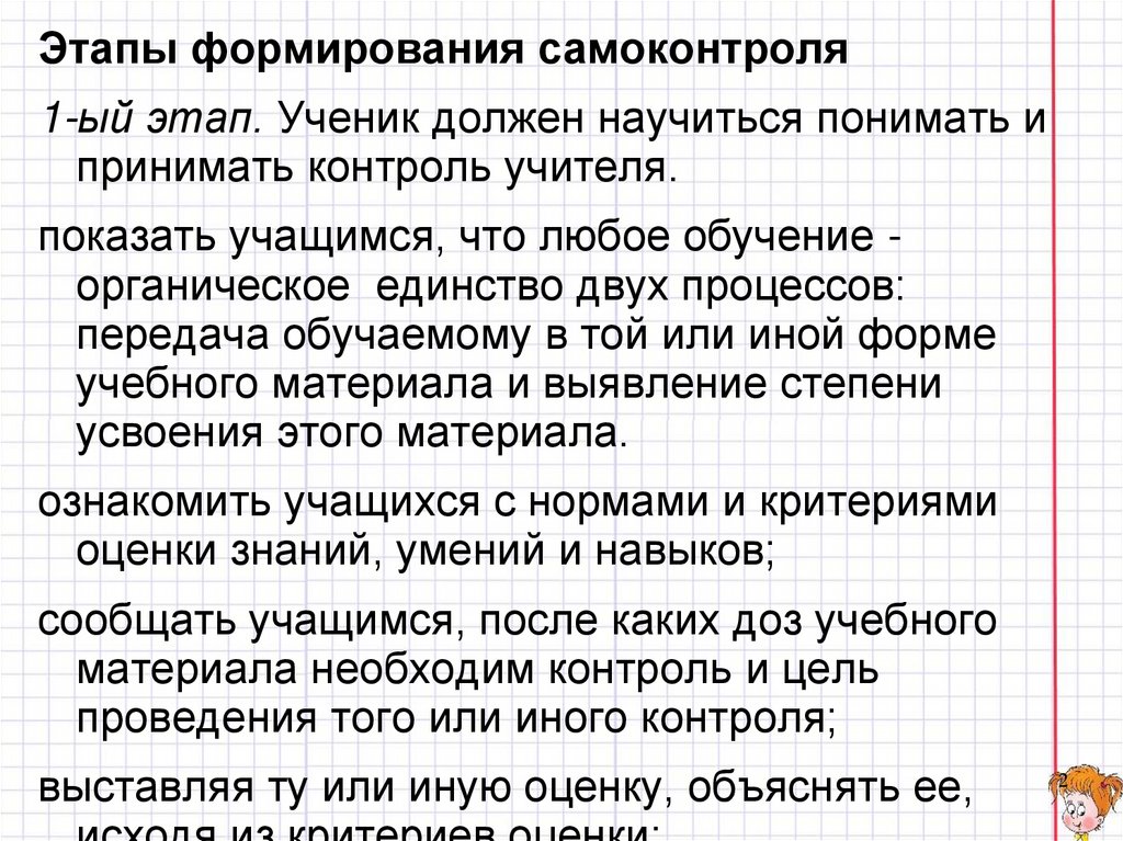 Этапы формирования самоконтроля1-ый этап. Ученик должен научиться понимать и