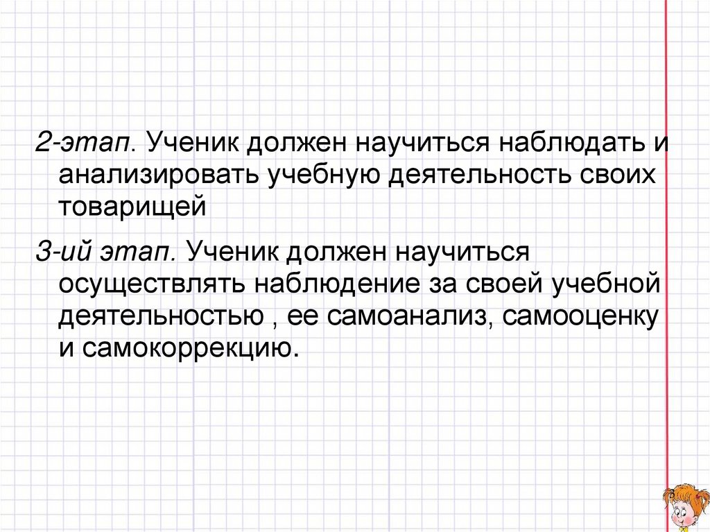 2-этап. Ученик должен научиться наблюдать ианализировать учебную деятельность своих