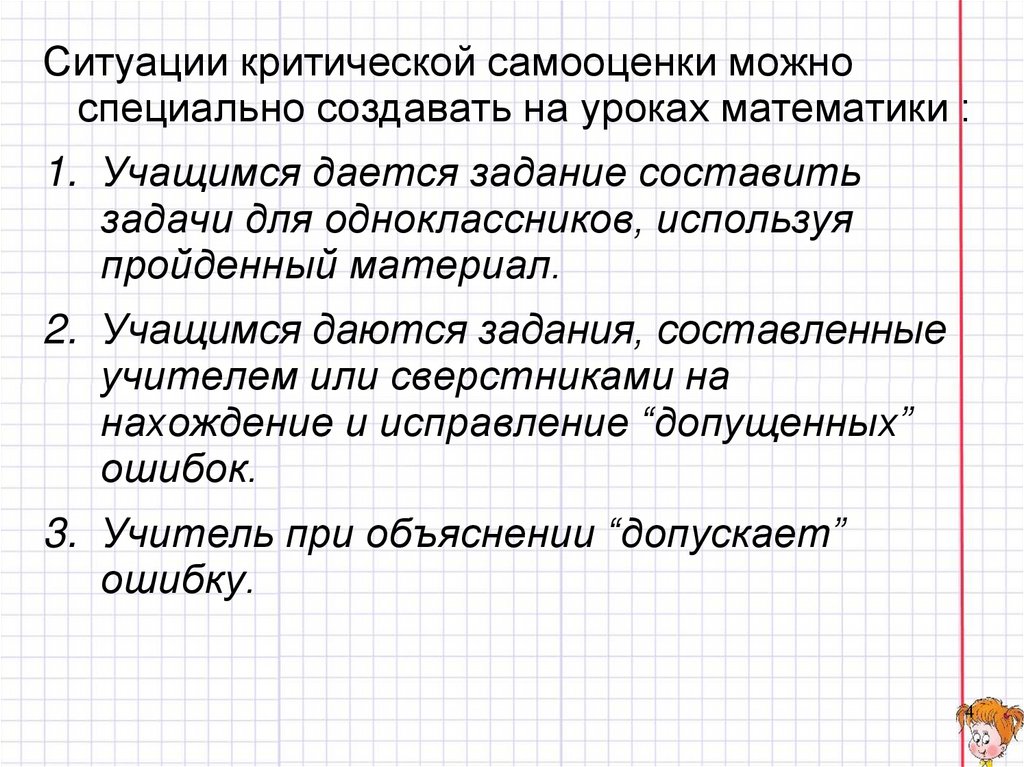 Ситуации критической самооценки можноспециально создавать на уроках математики :
