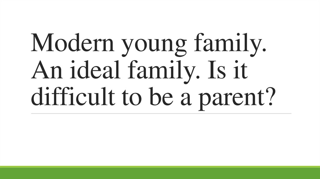 1. Modern young family. An ideal family. Is it difficult to be a parent?
