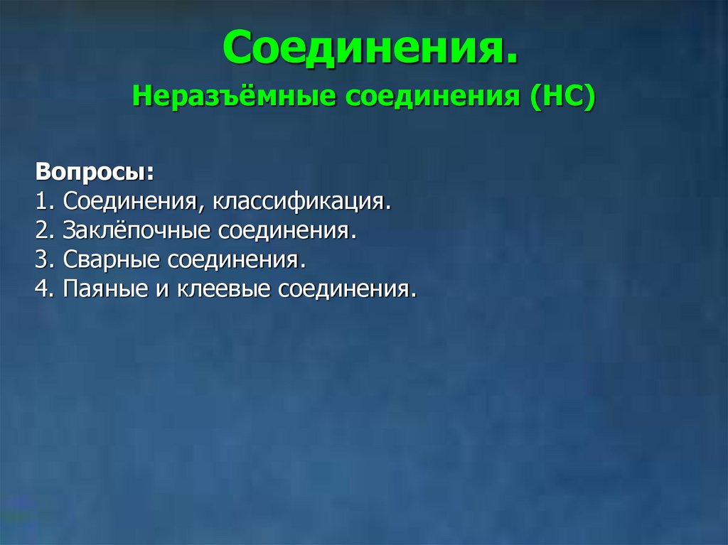 Соединения.Неразъёмные соединения (НС)