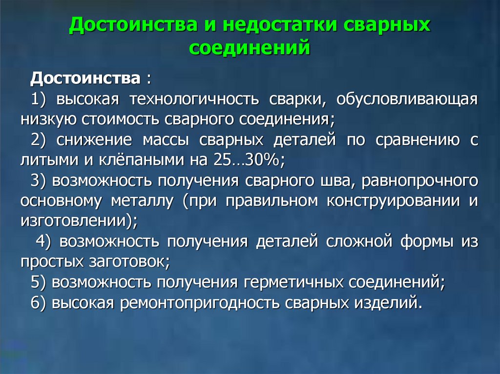 1) возможность соединения разнородных материалов;