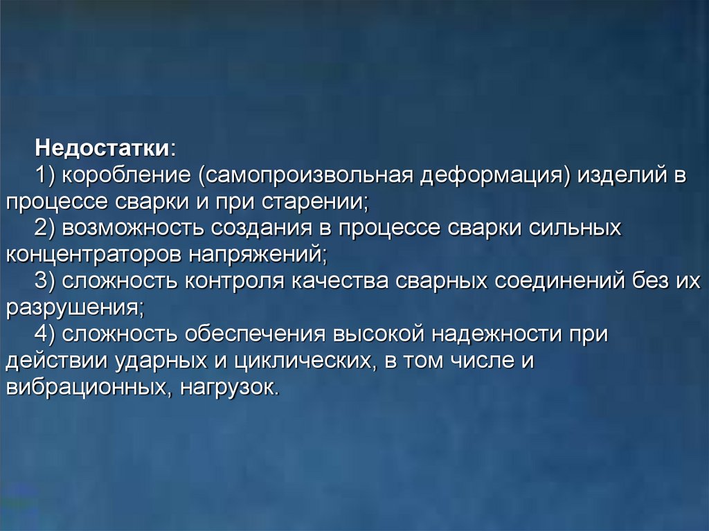 1) пониженная прочность шва в сравнении с основным