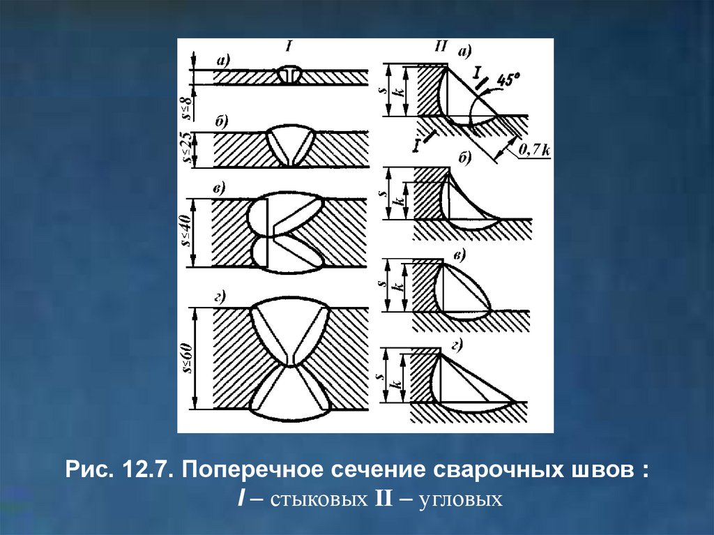 Рис. 12.7. Поперечное сечение сварочных швов :I стыковых II угловых
