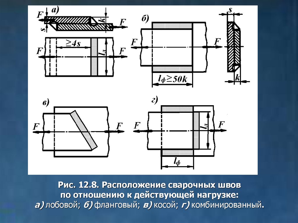 Рис. 12.8. Расположение сварочных швовпо отношению к действующей нагрузке: