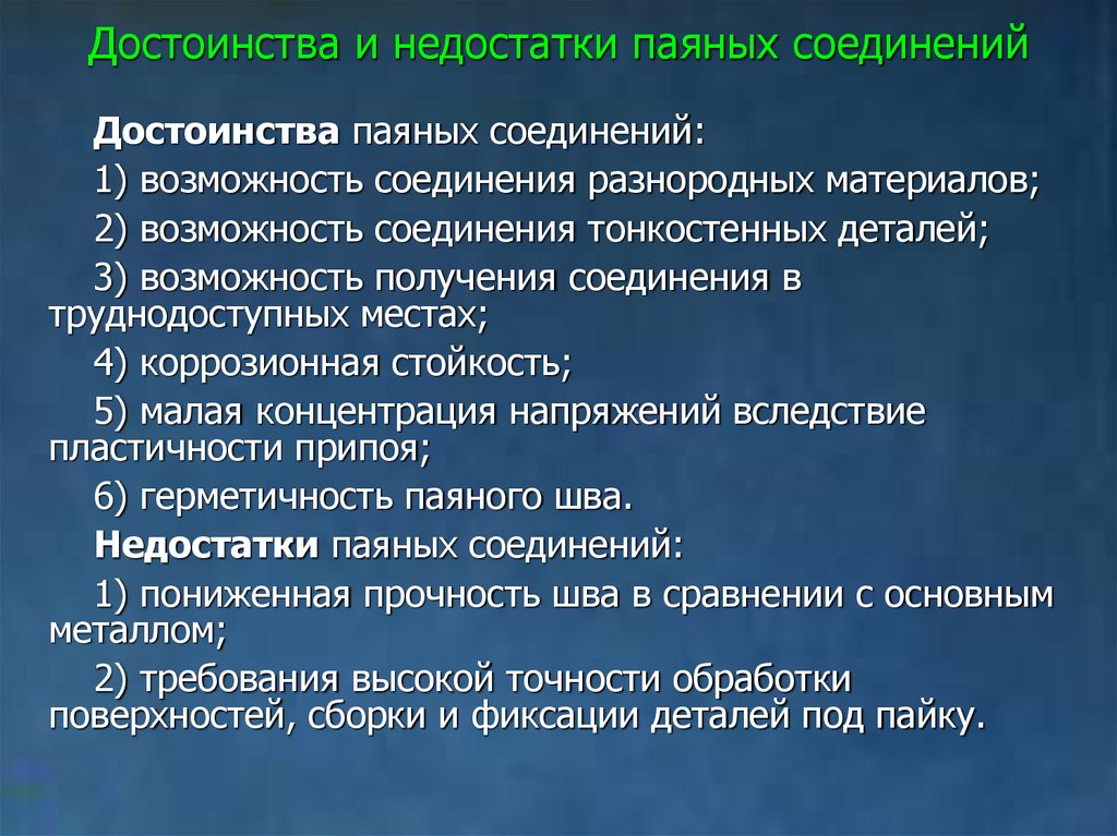 Достоинства и недостатки паяных соединенийДостоинства паяных соединений:
