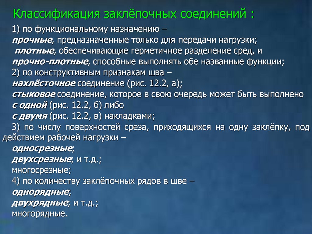 Классификация заклёпочных соединений :1) по функциональному назначению –