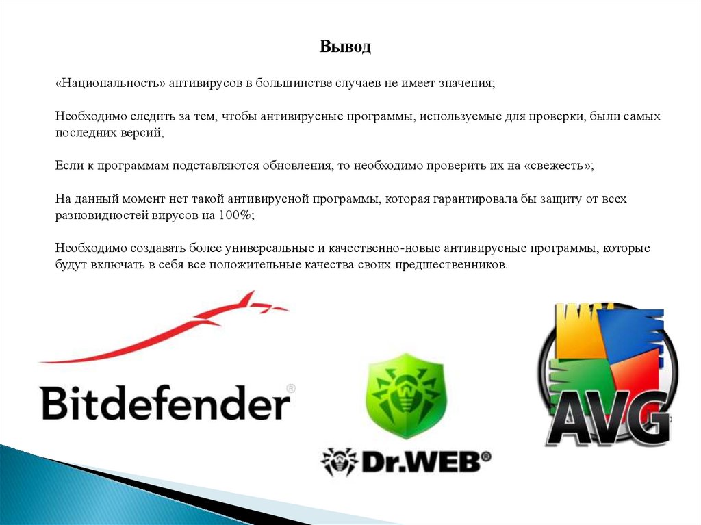 Вывод«Национальность» антивирусов в большинстве случаев не имеет значения;