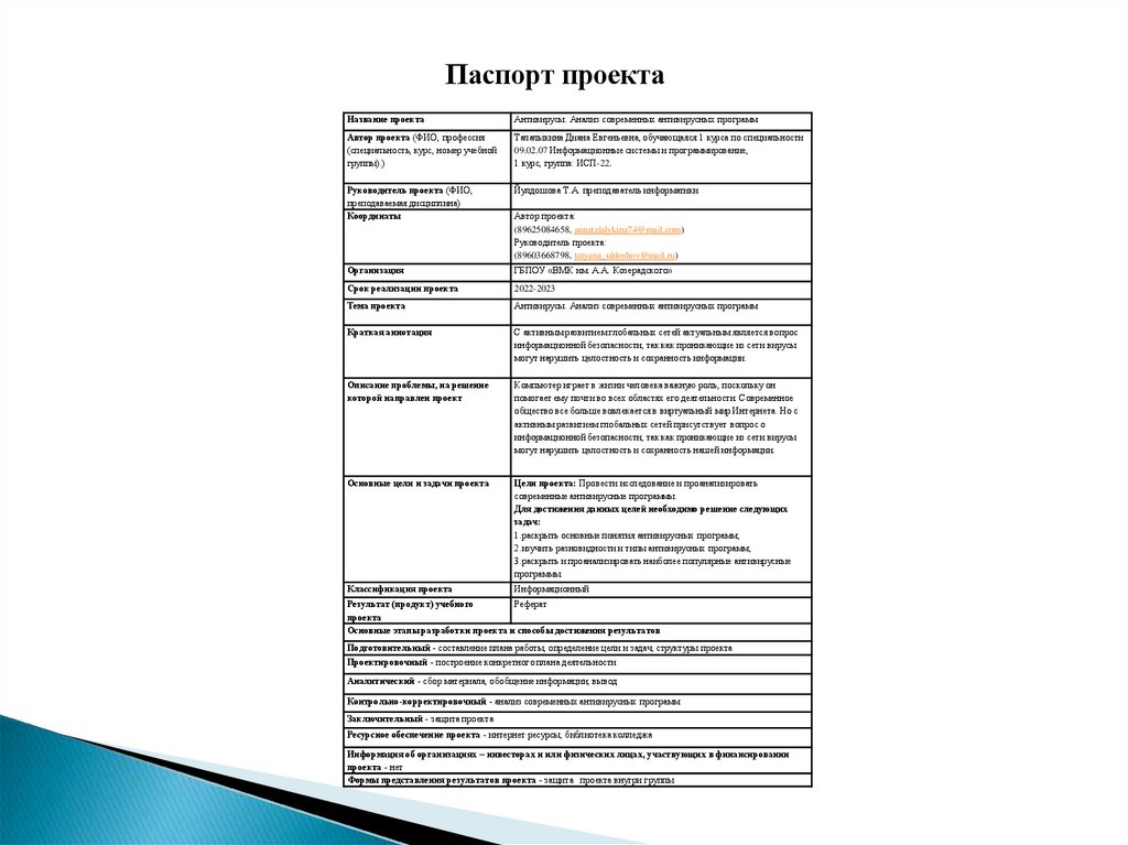Паспорт проектаНазвание проекта