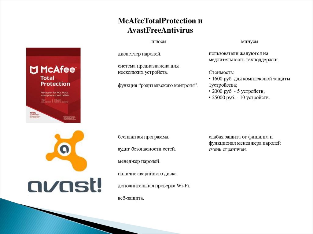 McAfeeTotalProtection иAvastFreeAntivirus