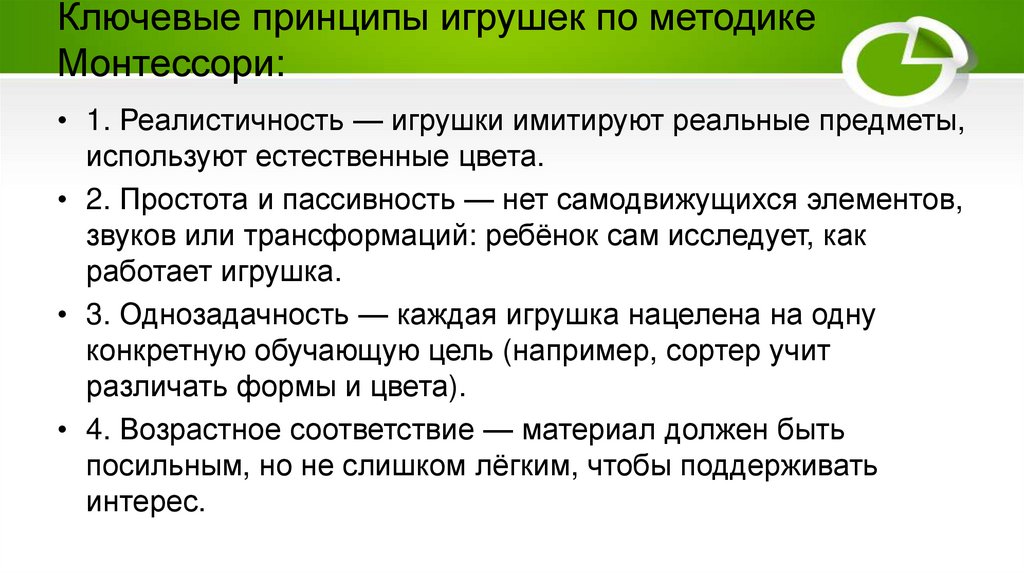 Ключевые принципы игрушек по методикеМонтессори: