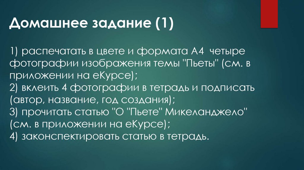 3) прочитать статью "О "Пьете" Микеланджело"