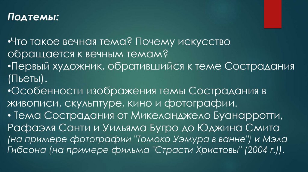 Подтемы:•Что такое вечная тема? Почему искусство