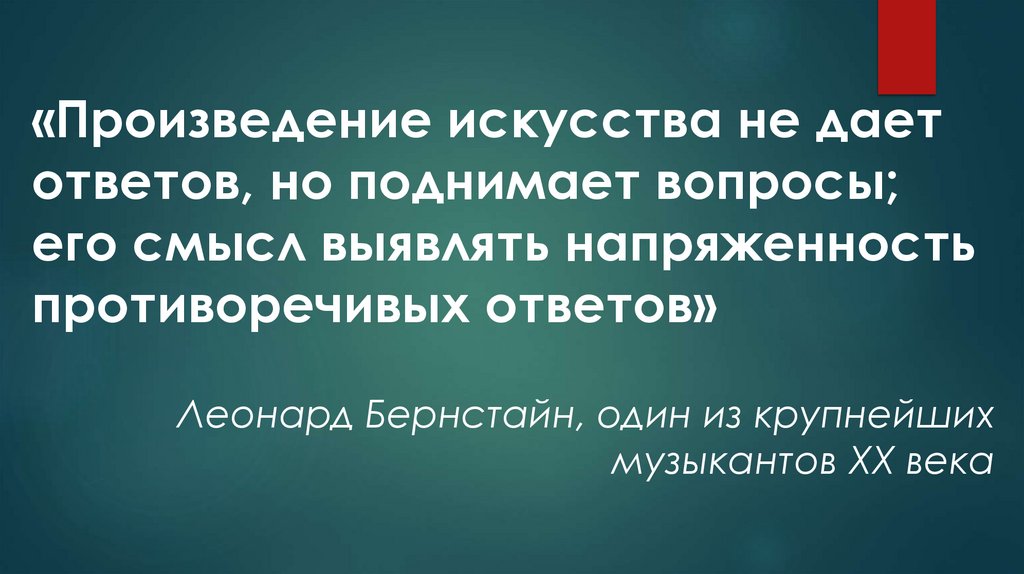 «Произведение искусства не даетответов, но поднимает вопросы;