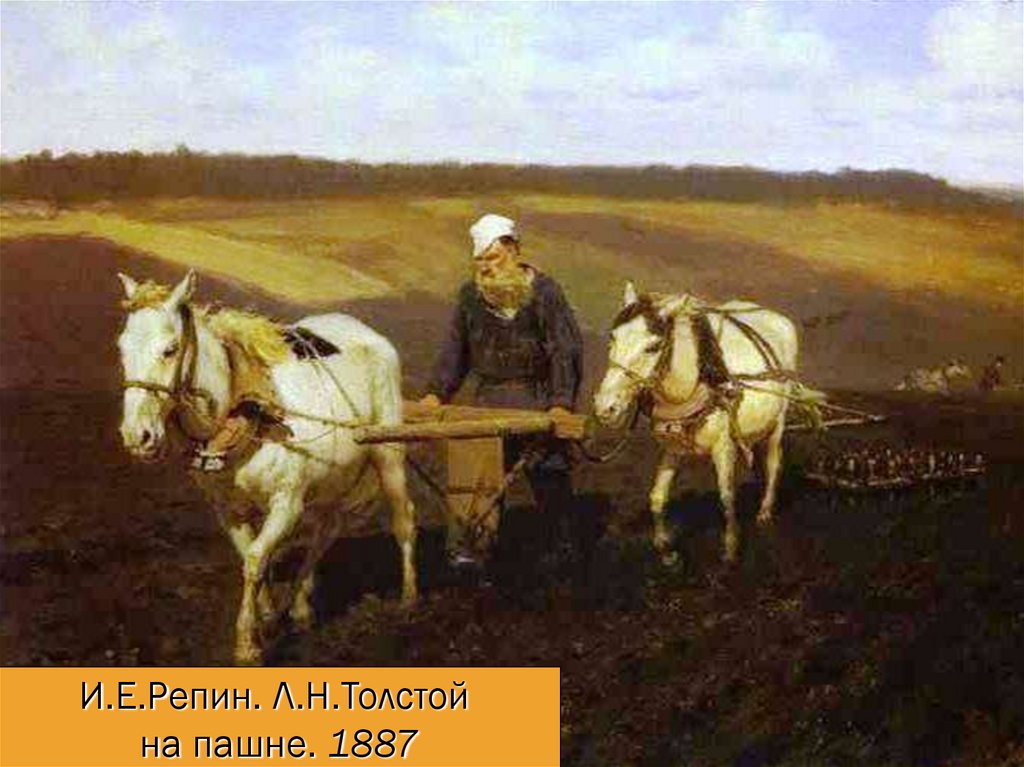 И.Е.Репин. Л.Н.Толстойна пашне. 1887
